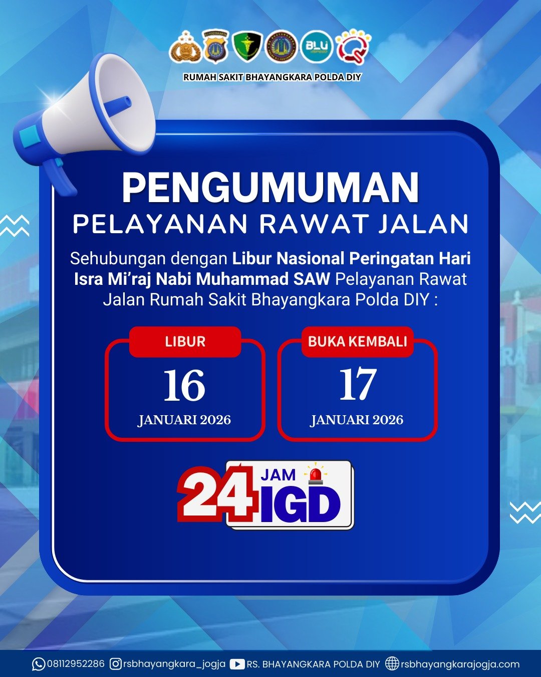 Informasi waktu kunjungan dan pelayanan utama RS Bhayangkara POLDA DIY